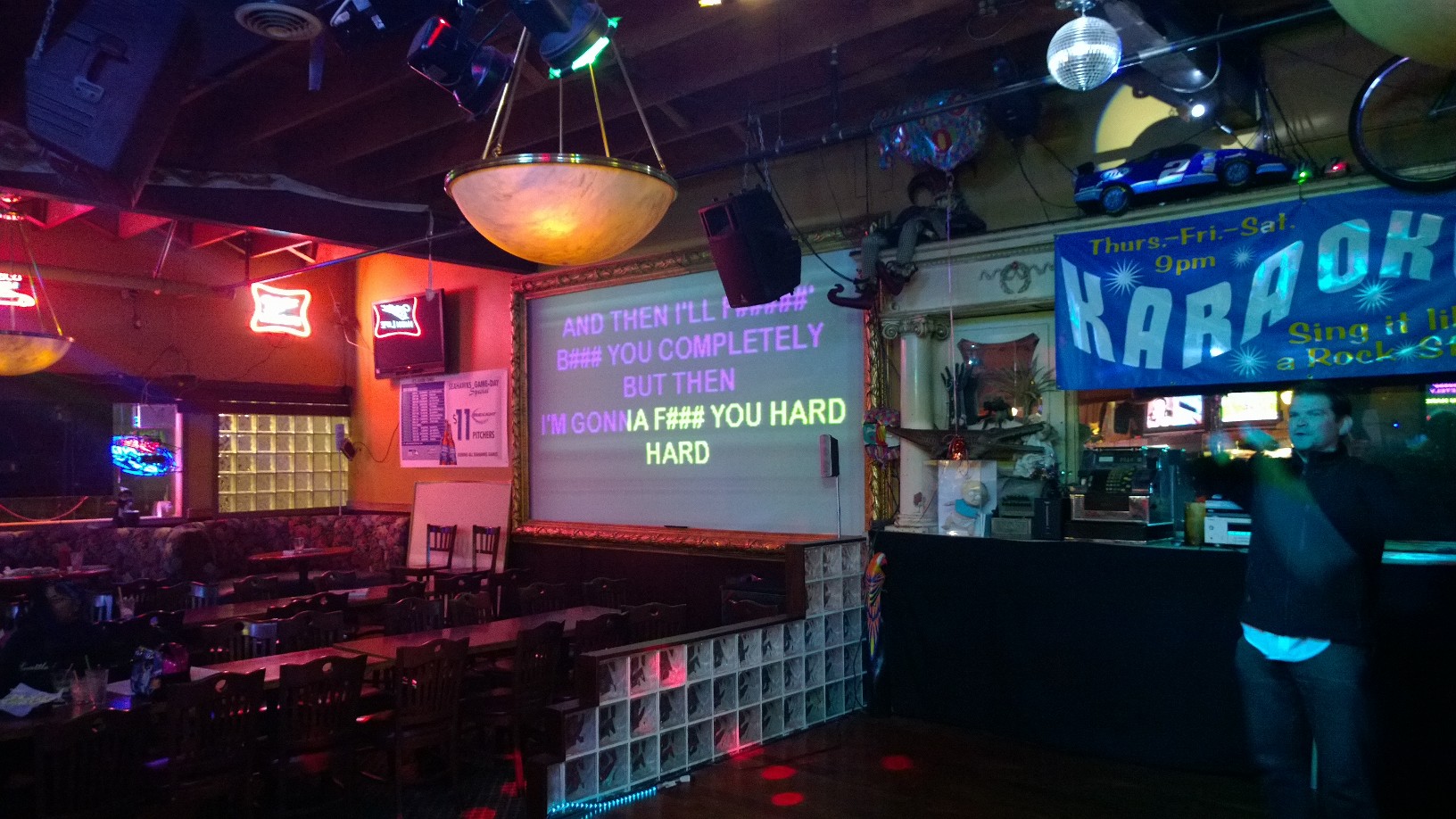 NoShameKaraoke wrote: Where are the singers looking for the lyrics? I like that you have the big projection behind them so the bar can follow along, though. In the panorama pic, just left of center you will see a 42" TV on the wall. I do wireless HDMI to that screen for singer lyrics. This isn't a super fancy venue, but it is a large venue. I was told they had there best Thursday in 6 months last night. For that I credit my wife who has been doing 90% of our marketing for almost a year now. She has done a fantastic job of keeping our name in front of the karaoke community, creating fun, engaging social media marketing, and putting up with the monstrous amount of time that karaoke has consumed in the past few months. I just might have to put her on the payroll.  -Chris