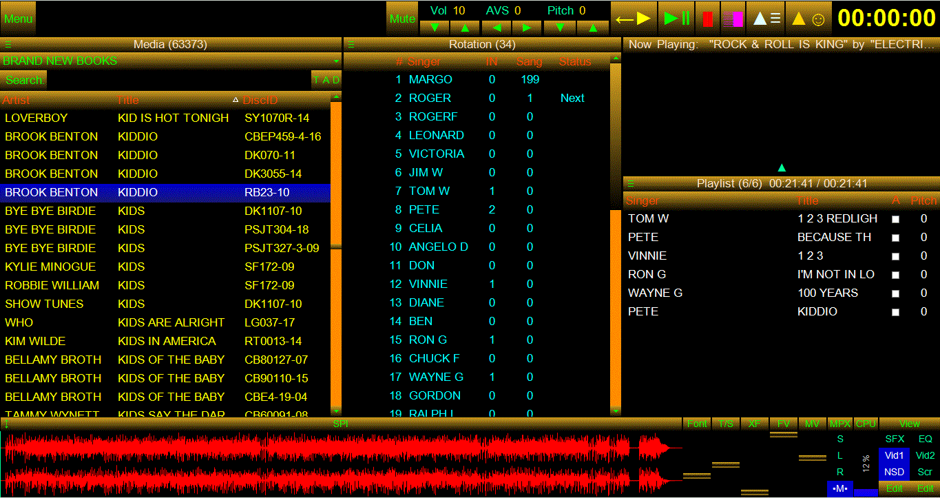 I have been out of the business for several years now, and decided to go a different way than a real computer, and having to deal with a program that could crash on you and then no show. I have almost 19,000 songs on CDG's and put them all on a hard drive player. The real work is taking each track and down loading it on to the hard drive and assigning a number to the track. This takes weeks to do, once you have made up books, see I'm dating my self, all a person has to do is write their name and the track number you are in business. The hard dive on the player has never crashed and just in case, I have a back up. It really isn't an issue, since I'm no longer in the business.