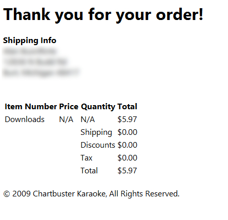 Here's a perfect example of what I'm talking about. This is a receipt I came across for a couple of downloads from CB's website. I have no idea what songs they're for.