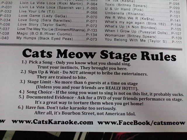 Have fun. Don't take karaoke too seriously. After all, it's Bourbon St., not American Idol.