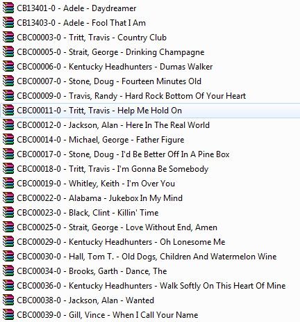 johnreynolds wrote: Btw, what did you end up using to rename your files? Did it take long? For the Chartbuster 12000 I didn't even attempt to match the songs to discs and rename. I dumped it all to a single folder on my hosting setup then I zipped everything up with MP3+GToolz, cleaned up a few files that had some odd formatting. Otherwise, I left pretty much alone. I figure this way I just track my discs separate from the 12000+ files. -Chris[/quote] --------------------------------------------------------------------------------------------------------- Chris – My transaction with CB was pleasant. I placed my of CB 12K digital tracks Dec 28, and received it Jan 9. (Seagate 320 GB Go Flex). I made a new folder, named it CB Digi, dragged & dropped to my own external. Right click on the folder and auto-zip all 12k tracks using MP3+G Toolz. Believe it or not that took 6 HOURS.  I wonder if there's another method to shorten zip-time? Also, how did you assign numbers to be listed in your books? Most track #'s are really long, like: CBC10835-00 or CB002361-01 Also included: Certificate entitlement for eight hours of studio recording/mixing time and 100 cdg Chartbuster discs "random picks" i.e., bluegrass, contemporary christian, artists series 6+6, country hot hits. I haven't had the chance to inspect all but this I can say that there were 3 or 4 count same discs in each category. Missing was the KJ Certification Purchase Form so I called them to inquire and was told it's in the process and will be mailed to me first week of Feb. For a little over $3k I paid (w/ coupon) I think is really well worth the price. Being a KJ for over 20 yrs, I have practically all SC songs released, complete DK series, PH, MM, TT, P/Songs, Pioneer, etc. I thought I have at least 40% of CB library until I inspect songs from their Microsoft Excel listing. I found out that I probably only have 25 or 30%. So, the rest of the songs that I don't have & more from the physical CD's I received (some not included in the 12k) will be a great addition to my collection. Not to mention I probably replace crappy versions from MM, TT, MH. Good deal!