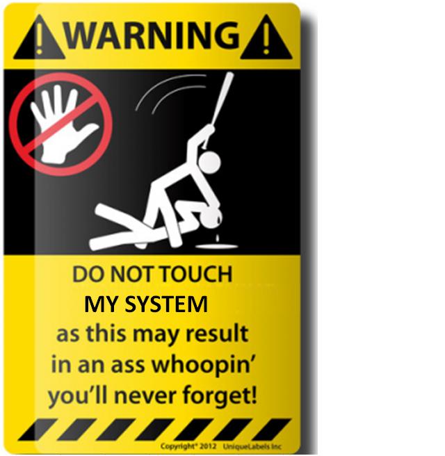 mightywiz wrote: my wife just bought some printable vinyl sheets, gonna have her print it and cut it out and stick it to the side of my rack case.....  Hmmm, printable vinyl sheets. Gonna have to print me some modified signs (I wish. Club manager won't let me): Don’t tap on, or drop my microphone as this may result in an (@$%!) whoopin’ you’ll never forget. Don’t ask me, “When am I up next?” as this may result………. Don’t heckle the singer as this may result…….. Don’t sit in the crowd & try to sing louder than the singer as this may result……… Don’t sing American Pie, Rapper’s Delight, Stairway to Heaven or any song over 6 minutes long as this may result… Rap isn't singing, so don't sing Rap as this may result......  (just kiddin', folks!)