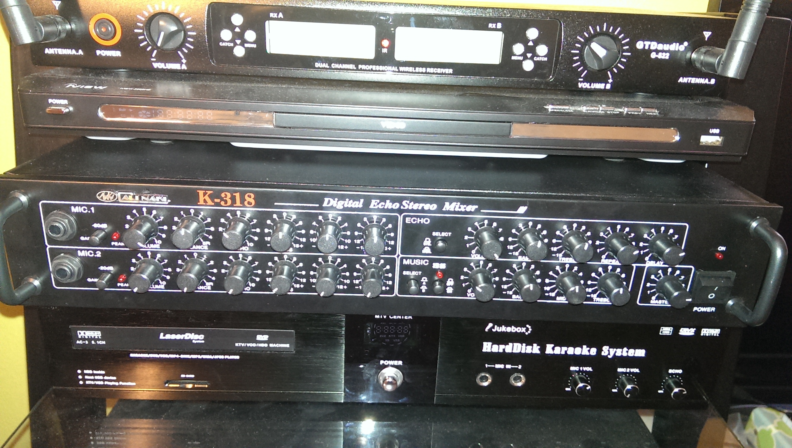 I will take a picture of the echo, delay mixer and post it here. The set-up is presently at my house in Temecula and I only go there once a week (I work and staying with a friend in San Diego to save on gas). There is a name brand of the mixer, I think it is AliKasan or KaliKasan or something like that. I meant I could not find that name brand anywhere when googled. I think it's just a name that has nothing to do with the manufacture of that machine. It's like some stores buy rice in bulk and just slap a name on it to make it their brand. I can tell that the machine works ok. It's just difficult to adjust it correctly (so the vocal sounds decent).