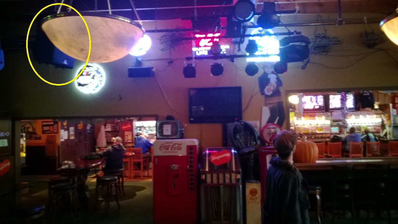 Currently they have 4 active Behringer 15" PA's hanging from the rafters in an odd configuration. We are going to be remounting them to get what we hop is better sound coverage of the bar.