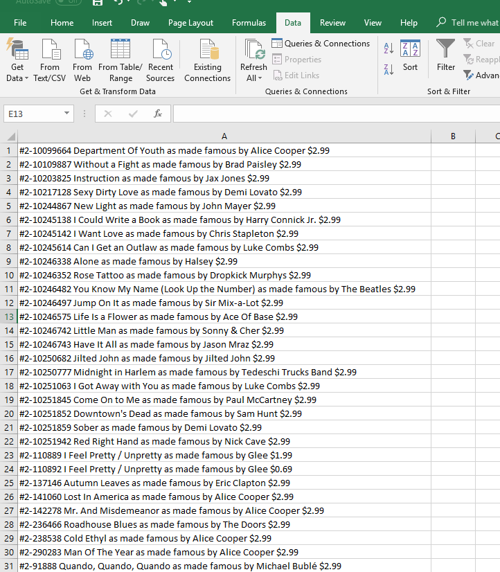 Ok but you said you were looking for the numbers for each song, if you have the original downloads in the naming convention they came with then you can get the original number for each and every song you are asking about already. So not really understanding what you need at this point.