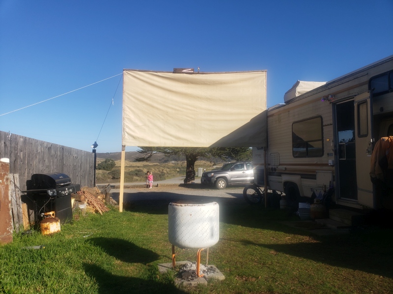 I work part time as a campground host at a campground, and we show movies on the projector from time to time. Just a small group of employees, not the general public. Attached are a couple of pics of the setup so you get the idea. In the past at another location I've done karaoke with a PA, mixer, compressor and wired and wireless mics, which was great, but it's a lot of setup and is a bit loud for this environment. Then recently someone gave me one of these $30 wireless bluetooth karaoke mics with built-in speakers: https://www.amazon.com/dp/B071SGMQ7VWhile it's obviously lacking compared to a full setup, it was enough to get people singing. Surprisingly much! Full on howling around the campfire while reading the karaoke from youtube on a phone. So I was thinking that in the COVID era these mics are a nice low key way to have an easy campfire-singalong style karaoke party, since they're cheap enough to just get a bunch of them so people can use the same mic all night, or share with their partner. And it's also a nice way to keep the volume down. And we're outdoors, socially distanced, and not sharing equipment. It would be nice to get the music playing from all the mics at once though, which is where I'm currently stumped. I know I can broadcast to a single speaker, and I might do that as well, but I'm thinking that the distributed sound source (the speakers in each mic) might make it so we can have quieter music volume overall, which is a big factor here. So far I'm thinking something like this: - connect a headphone distribution amp to the output from my laptop. Maybe this one (alternative suggestions invited, would be nice to find one with 1/8" outputs): https://www.amazon.com/Knox-Four-Channe ... B07GXF5WVP- connect a bluetooth transmitter to each output from the distribution amp. These are pretty well reviewed and can broadcast to two mics simultaneously: https://us.amazon.com/Nulaxy-Bluetooth- ... B07S2912VVSure would be nice to find a bluetooth transmitter that can feed more than 2 mics at once, but I don't see any. I don't imagine anyone knows of one? And this BT transmitter has an 1/8" output as well, so I could conceivably just daisy chain multiple BT transmitters and skip the headphone DA... Might be asking for gremlin trouble though. - and I can of course boost the music volume with regular BT speakers, but for this setup just the mics might be enough. I'm wondering if anyone has any ideas for how to improve the system? Keeping in mind that it's just a goofy little low volume campfire setup. Any other mics you think I should be considering? And what are people's thoughts about spraying these mics with sprayable hand sanitizer. As a shot in the dark, do you think that would harm the mic? Maybe wipes would work better? Note that I'm not talking about for swapping mics during the night, I'm talking about at the end of the night. People would use the same mic all night. I see a few "mic sanitizer" products on Amazon, I wonder how it differs from simple hand sanitizer. And hopefully that BT transmitter automatically reconnects with the mics, and lets me use 4 of them to pair with 8 mics (no frequency conflicts etc). Thanks for any help!