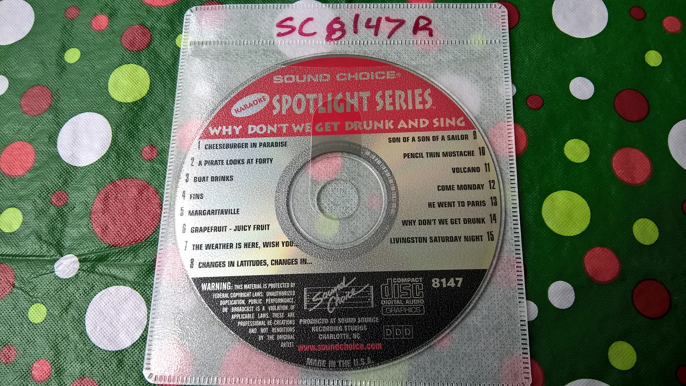 Dravan1 wrote: Sc seems to think running a show without the disc's should be illegal, if you read the COPY write law disclaimer at the end of their songs now it says.." not playing this on from the original disk, or making a digital copy" is illegal.. meaning SC, doesn't want you to 1. back up your library, or 2. buy their disc and burn it into a hosting program.... its crazy..... also on their website they have a soundc choice certified" thing that cerftifies all your songs are legal... Actually the discs say nothing of the sort. They all do state Warning: This material is protectected by federal copyright laws. Unauthorized duplication, public performance or broadcast is a violation of applicable laws. These are professional re-creations and not the original artist. Their authorizing duplication via the audit to prove you own the original disc. The PRO fees cover the public performance aspect. Not sure what one would need for broadcast rights. Basically says you can't do any of this just on your own. Quote: I had a problem with them because some of the discs I have they don't sell in that form anymore.. I.E sc8147 all jimmy buffet.. they still sell that disc but there are different songs on it now same with their all EAGLES disc's... same disc number but they swapped out some of the songs for other now more popular ones. The SC 8125 Eagles disc was never re-released - it was simply discontinued. Not sure about 8147 (Jimmy Buffett) but I have had that disc since around 98 and have never seen a re-released version of that one. What songs are different between the two?