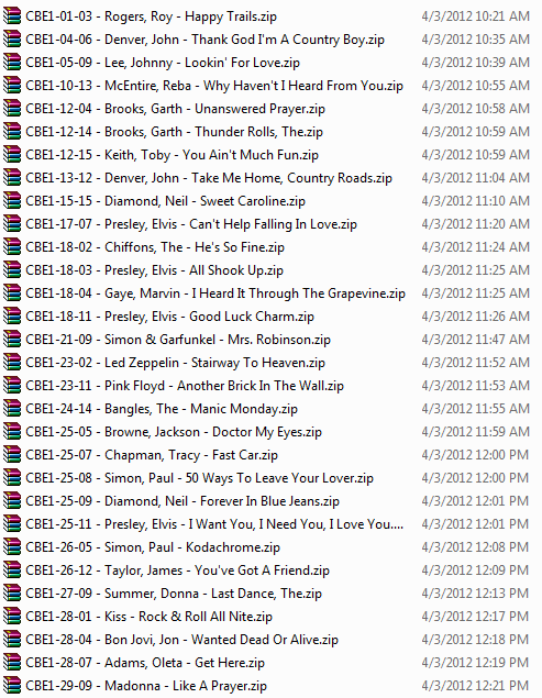 Also the included list files are inaccurate. The list for the largest part is in two parts and totals over 12,000 songs...and there are not 12,000 in the folder. Will be fun determining which ones aren't there. I've already started comparing to my essentials (I have 1-10) and already several songs are not on the "12,000" set. Not even through the letter "A" yet.