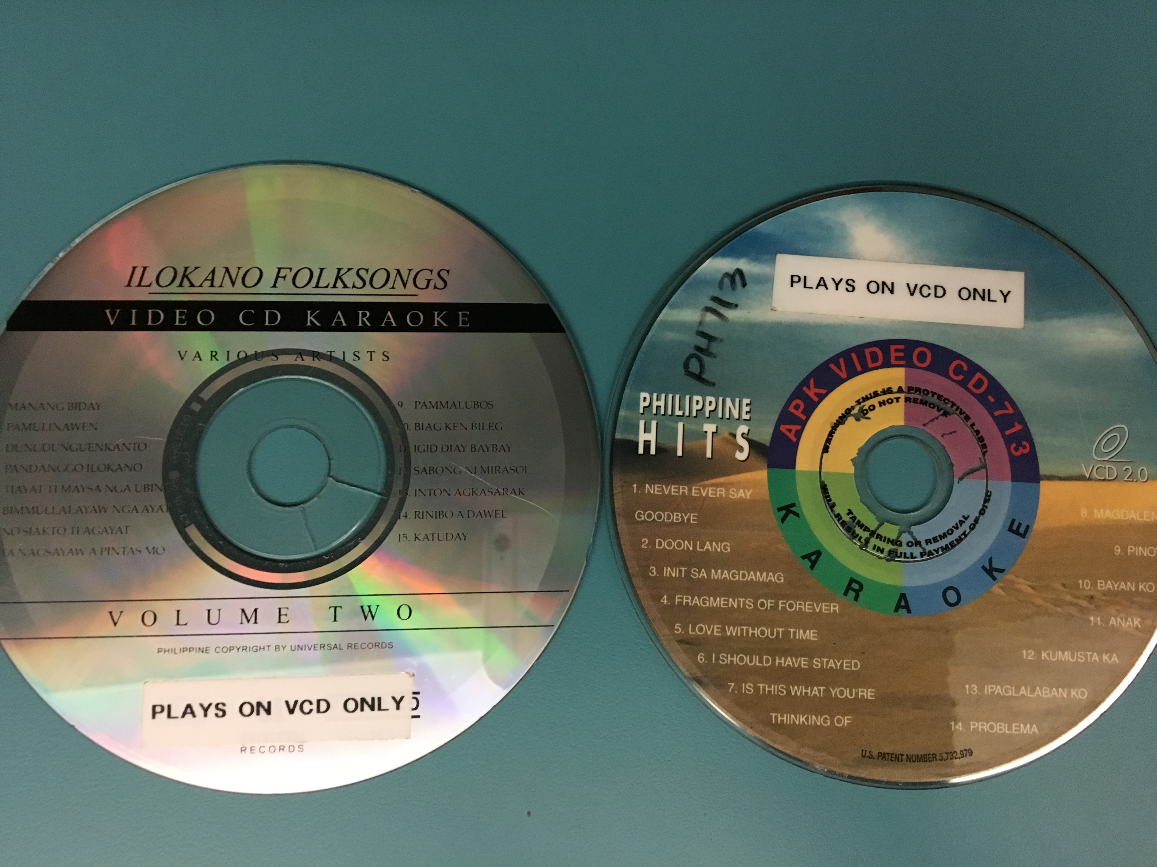 @ jclaydon. Thanks but, I think they are impossible to fix. Behind the VCD there are scratches, and it looks like it is missing some data. @Brian A Thanks for ur suggestion. The Ilokano Folksong VCD they have the volume 1 and 2. I found the volume 1 few months and asked them if there was volume 2, and he just said sorry. http://www.moviesent.com/products/opm-i ... ksongs-vcd (it's .99$ for Volume 1 VCD) If I can't get anymore help, I guess I would have to ask acekaraoke. @Karaoke Croaker I know how to rip Karaoke CDG and Burn them, but I'm having problems with Power CD+G Burner 2. Also, I'm not sure how to rip VCD's. Not sure what you mean by "why not just download the tracks from a MIRC Channel "