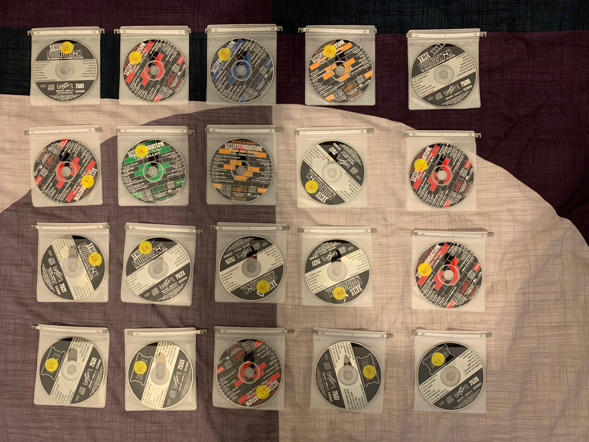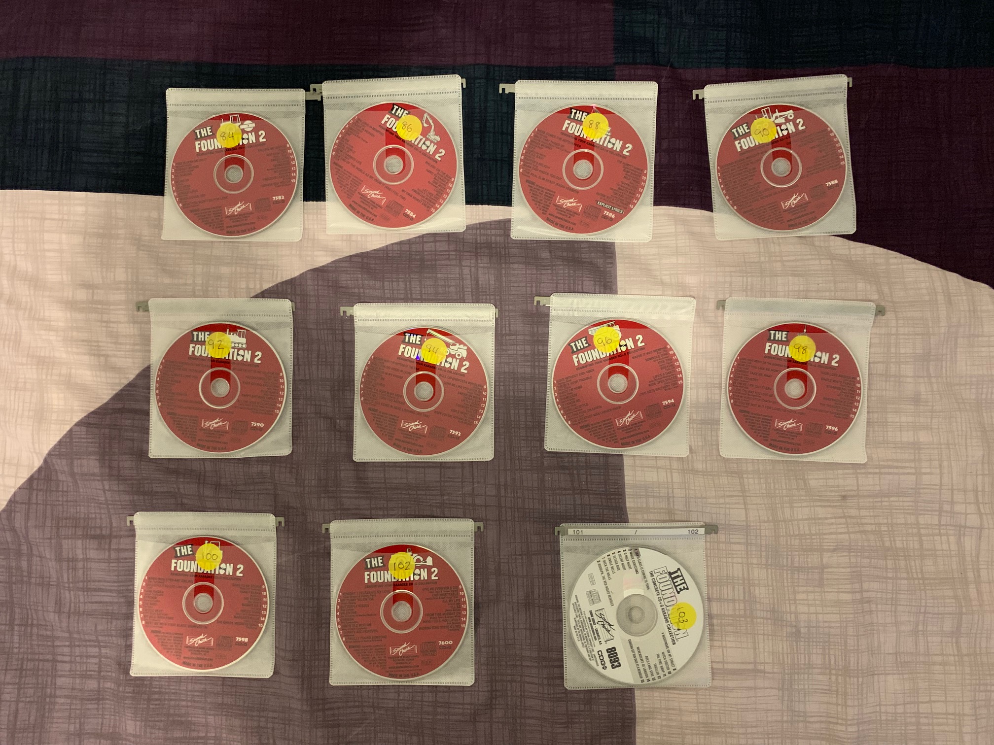 Total of 101 discs, SC7501 - SC7600 and SC8093. 15 songs per disc so 1515 in total.