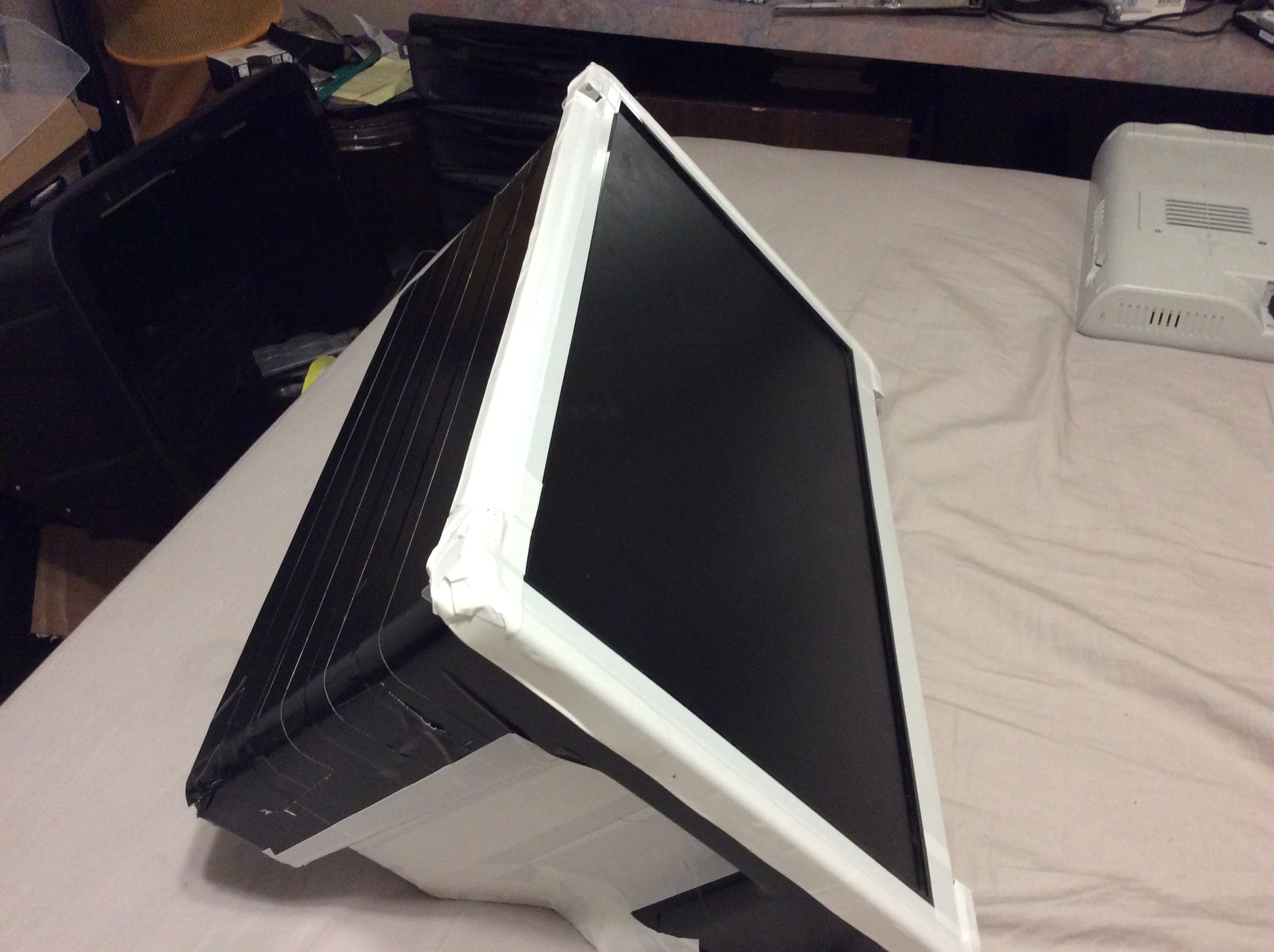 Here is another DIY project using a 17" Led tv ($25.00) and plastic storage container ($4.99) 17" x 11.5" Attachment: