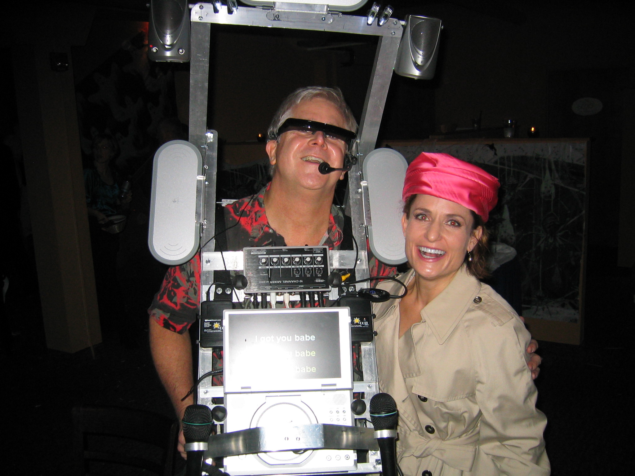 I actually have a sweet little, 10-channel mixer that I used in my Strolling Karaoke Show - Halloween costume. (Photo attached.) I can make a working system without the VocoPro unit, using the mixer with laptop, mics and monitor. Someday, I'll try hooking it up so I can hear mixed mic & background through headphones and record only vocals. If that works, I'll mix the vocals and original background on my PC. That way, I'm not re-recording the background via speakers, microphone and audio input components.